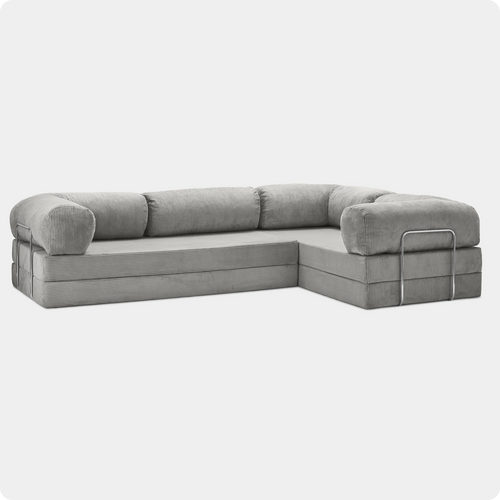 Manchester-tyget är inte bara vackert att se på, det är slitstarkt och förlåtande. Ramen i rostfritt stål fungerar både som ett stabilt stöd och en distinkt designdetalj som ramar in den mjuka formen. LUGN är designad för att vara den plats där du landar efter en lång dag.